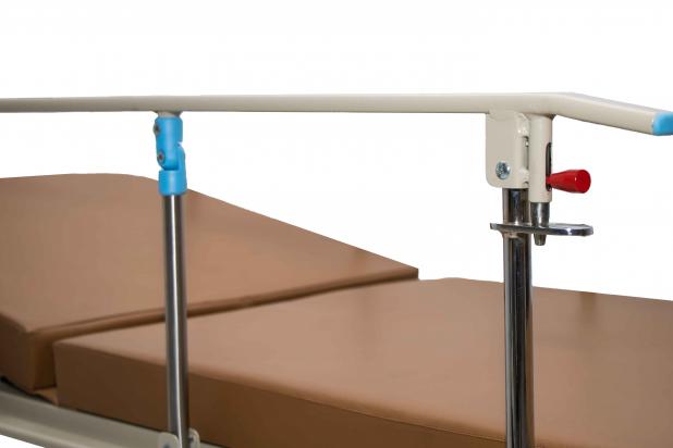 (A) Juego de dos (2) barandas volcables fijas a la camilla, de acero SAE 1010.