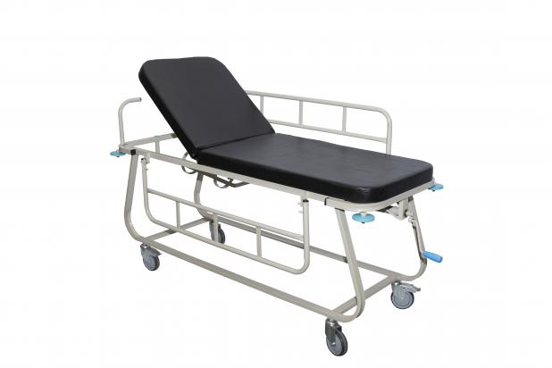 Camilla para traslado de pacientes de sencillo y fácil manejo con quiebre de cabecera de accionamiento manual.